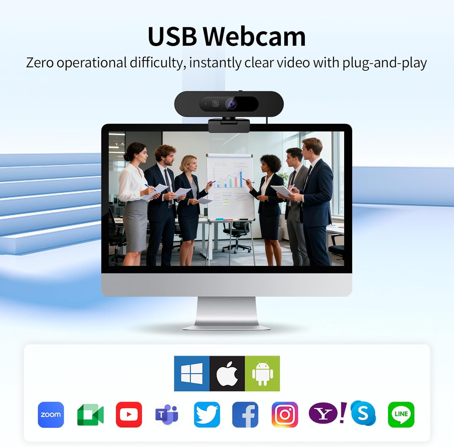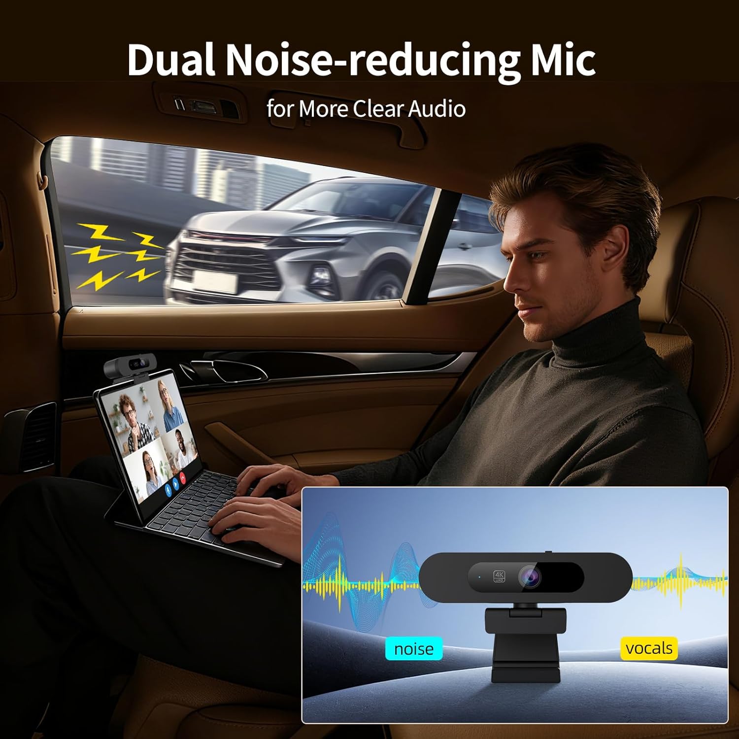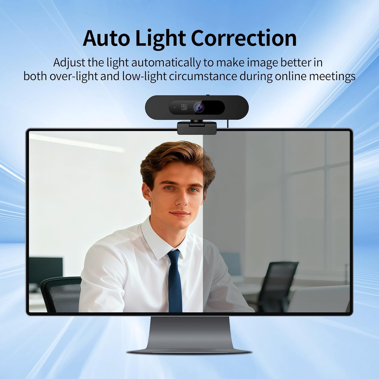 4K Webcam UHD 8MP & Auto Light CorrectionDual Microphone: This 4K webcam for pc captures every details for a clear and smooth video conferencing experience, perfect for conference calls, online classes and live streaming. Auto light correction helps you look your best in dim and harsh lighting. You do not need to draw the curtains first to get a normal exposure picture when video calls come.