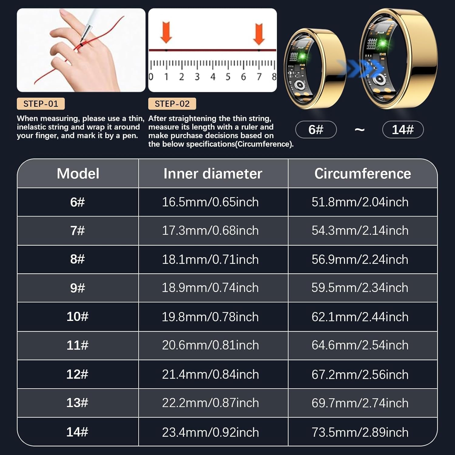 ⭐【Size Before You Buy】The KNGAD Smart Ring follows U.S. ring sizing standards. If you already know your U.S. ring size, you can order the health tracker ring in that same size. If you don’t know your U.S. ring size, we strongly recommend checking the U.S. ring size guide, measuring your finger circumference, and using that to determine your perfect fit.